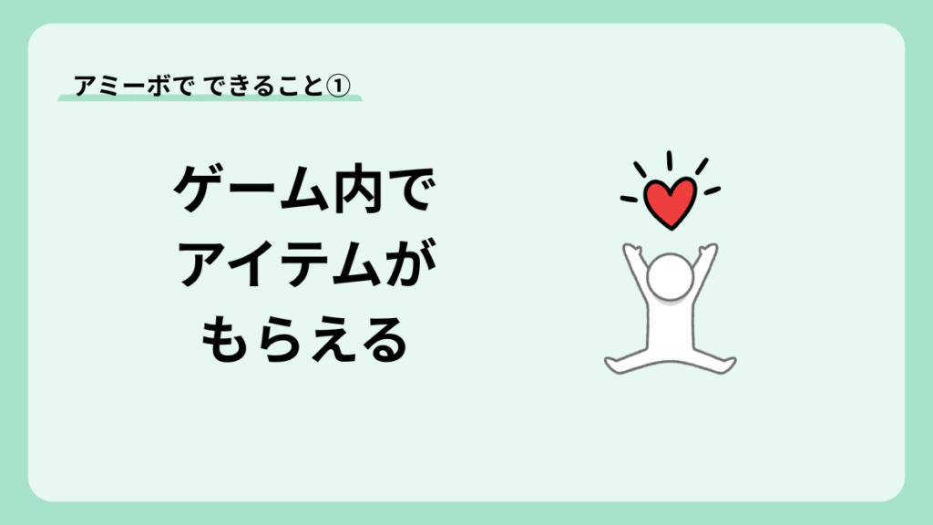 アミーボをゲームに読み込むと、アイテムや特典がもらえる作品がたくさんあります。