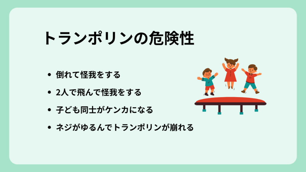 トランポリンで遊ぶときには、どんな危険があるのか、我が家の実体験から4つ紹介します。