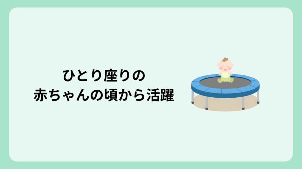 トランポリンは、場所を取るけど、ひとり座りできる赤ちゃんの頃から長く遊べるおすすめの遊具